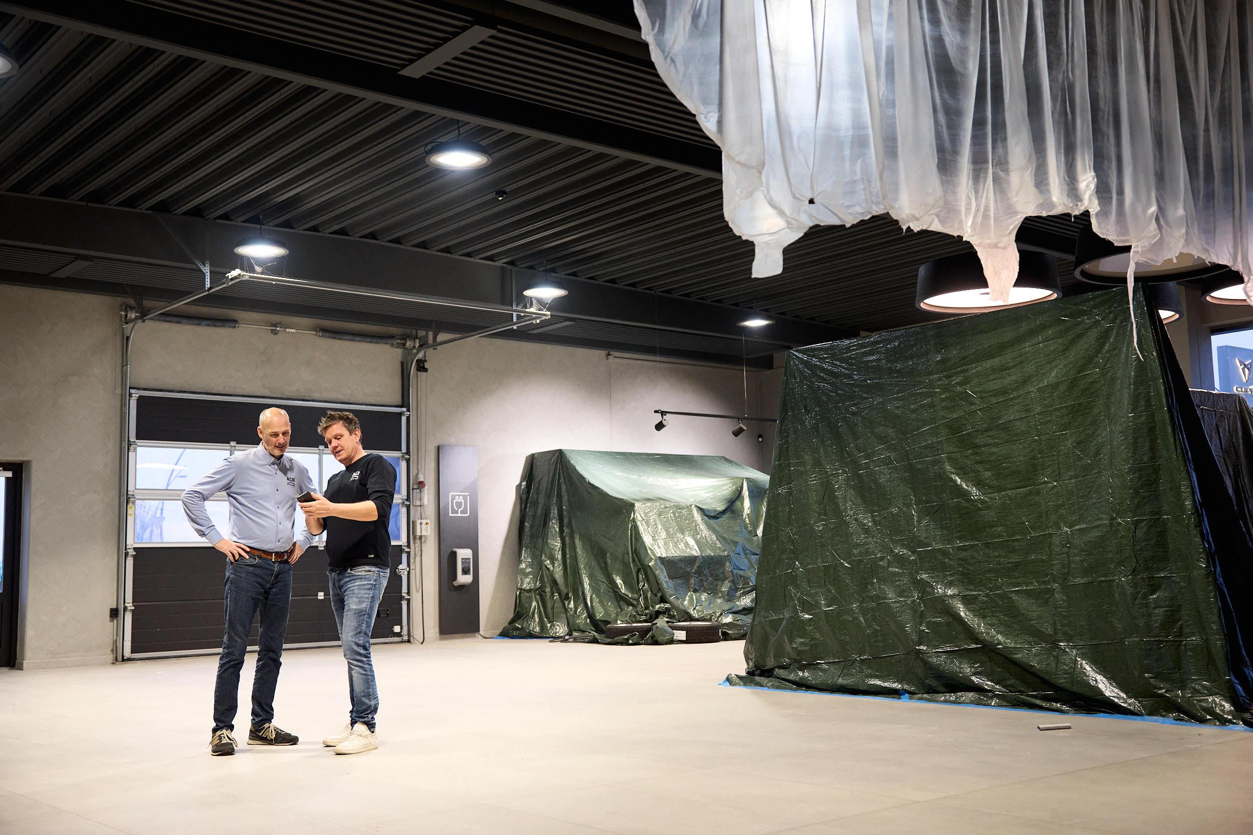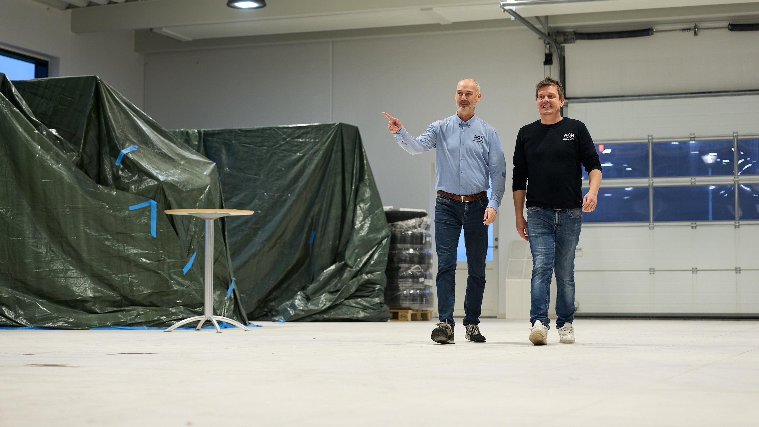 Henrik Larsen og Mads Dahl i værkstedet hos AGN Thisted i forbindelse med fusionen mellem LD Auto og Auto Group Nordvest